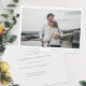 This simple, chic modern photo wedding save the date flat card template features SAVE THE DATE and your names, date and wedding locale beneath your photo. We've chosen standard sharp corners as the default shape, but this design also works wonderfully with rounded corners, so try both looks in editing mode and see which grabs you! You might choose to change the font, punctuation or colour used for various text elements of this design on the front and/or back. For example, you might choose to give a different colour to the SAVE THE DATE or other text, change that text to read as SAVE OUR DATE or something else, or to delete something or change a text field entirely with a different message. We've highlighted the SAVE THE DATE part of the design with rose gold and your names, date and wedding locale are a slightly softened black. You can change these colours, and we also offer different colour versions separately already made for you. On the back we chose an atypical order for the information, putting the "please save the date' text after the 'for the wedding of' text, which lends a path less travelled charm to it. You can alter this by changing the text in each of these text fields and entering by hand the part you want to place in the order you want to show it. The default text colour on back is a dark grey that's mostly black, but you can change this, the font and also the use of upper and lower case to suit your taste. On the back, we've chosen a background colour called White Smoke, it's a very light grey that's mostly white. You can easily change this by either picking one of the basic colours in the editing tools, entering another colour number in place of ours if you have a specific hue in mind that you found in your research, or by looking at the colour spectrum tool and choosing something by sight. Or you might choose to make the background transparent to let the colour of the paper simply serve as the base tone. The default paper type is matte, we love it for the feeling of warmth it adds. But semi-gloss is also an option, and zazzle's signature and premium papers are a great way to enhance the look! We hope you'll enjoy experimenting with this clean, contemporary save the date template and make it uniquely yours with the intuitive design tools and your inspiration. We also offer variations of this design in our store along with a selection of other modern minimalist save the date cards in various formats, so please have a look!