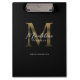 Simple Chic Script Metallic Black Gold Monogram Clipboard