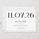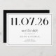 A simple modern save the date card. Personalize this chic black and white design to have your wedding date, names and details.