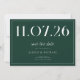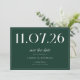 A simple modern save the date card. Personalize this chic emerald green and white design to have your wedding date, names and details.