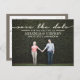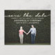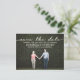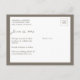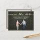Elegant typography and simple styling of this photo postcard features your engagement photo, and "Save the Date" info in creamy ivory text on the front. Soft neutral grey/brown colour on the back with space for all the important details; wedding date, website and a personal message. Text at the top of the card makes it perfect for your offset engagement portrait.