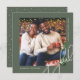 This contemporary one photo Christmas greeting card features elegant white calligraphy script typography and one photo on a rustic green background. The back of the card is a classy green and white dot pattern. Shop this modern holiday collection for additional stylish colours and coordinating mailing accessories.
