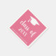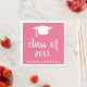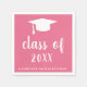 Minimalist graduation napkin featuring a simple and classic design with a grad cap and "class of year" in a thick script handwriting along with the graduate's name in white over a pink background. The background colour may be changed to any colour you wish. A traditional style with a modern flair for a girl graduate. These paper napkins are a great way to add a personal touch to your graduation party.
