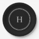 Simple and elegant with classic styling, this design features a double-lined border in a tasteful shade of neutral grey over a stylish black background. The border is perfectly symmetrical, framing the monogram initial in the centre of the design. Personalize the text template with your monogram initial. These plates are great to have on hand for entertaining and have the ease of being disposable for your convenience. Available in 2 sizes: shown here in the 9-inch diameter size, they are also available in 7-inch diameter size.