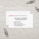 The design is a simple black and white, professional one with a dash of colour in pane divider line. The design offers customizable logo and typography fields for corporate/ business name, individual holder's name, professional/position title, business address, phone, email, webpage, and any additional contact information. On the back of the card is another customizable typography field for business tagline.