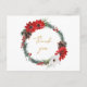 This simple classic Christmas wedding thank you postcard features a clean, bright white backdrop with simple, minimalist black and gold lettering and handwritten calligraphy accents. Embellishments of beautiful and classic green and red Christmas wreaths with delicate gold features create a perfect winter holiday aesthetic while maintaining a polished elegance for your Christmas wedding or other special event. As with all of our designs, if you have any questions concerning the design or would like something specially made to coordinate with your wedding, please just ask.
