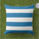 Simply stylish outdoor pillow design features a pattern of wide white horizontal stripes with a cobalt blue background. Classic design coordinates with any style of decor. Background colour can be modified.