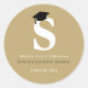 Simple Classic White Monogram Letter 's' With Modern Graduation Cap On A Plain Gold Background, Grad Party Favour Sticker / Envelope Seal.