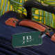 This custom luggage tag has an elegant text template layout that includes your first and last initial on the front of the tag and slot for inserting your business card on the back. Shown here in popular ivory beige text with classic green background, the look is timeless. Personalize with your name and initials.