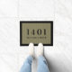 A great gift for newlyweds or new homeowners, our personalized welcome doormat features your house number and street name in classic black lettering on a moss green background.