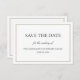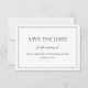 Simple classic typographic Save the Date wedding announcement card. Horizontal layout with block and elegant script text within thin double striped border. Small monogram on back. To adjust the layout, click Personalize It, Edit Text, then click and drag text sections to desired locations. Use Cntrl to select and move multiple sections at once. The monogram on back can be removed by clearing the text field, or by deleting the entry in layout view as noted above.
