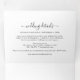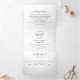 Display all the details of your wedding with this simple classic tri-fold 3 in 1 wedding invitation featuring a classic white background, black calligraphy and cursive font. It includes a photo of the happy couple, and wedding invitation. Guests can easily cut away the RSVP postcard and pop it in the mail! Easily edit all of the information with your wedding details using the template provided.