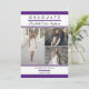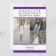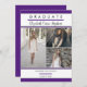 Simple, classy and elegant three photo purple, white and gray with black text graduation announcement design featuring script "signature" text for your grad's name.