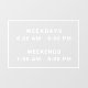 Simple clean store open hours sign window clings