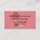 Simple cleaning service business card template including a cute cleaning lady symbol that has a mop, mop bucket, and cleaning sponge in the background. Designed for a home or office cleaning service, maid, or janitorial services.