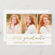 Handwritten collage photo card inviting your family and friends to your daughter's graduation party. Simple Collage | Graduation Party Invitation for 2015. Design by Elke Clarke © Visit our shop www.zazzle.com/monogramgallery* for more designs and styles. Add your own photos and text. A simple gold foil typography handwritten script font text overlay (printed photo effect) with the words "2015 Graduate" with a three photo collage design. Replace sample photo with your own. White and gold colours.