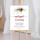 This simple colourful classic floral unplugged ceremony poster is perfect for a rustic wedding or bridal shower. The design features burgundy, pink, blush and white watercolor flowers with green leaves and red berries neatly bunched into attractive bouquets.