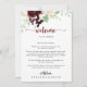 This simple colourful classic wedding welcome letter is perfect for a rustic wedding. The design features burgundy, pink, blush and white watercolor flowers with green leaves and red berries neatly bunched into attractive bouquets.