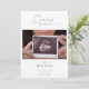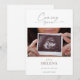 Share the great news of your baby's future arrival with this simple coming soon pregnancy announcement card. The design features an ultrasound photo, a classic calligraphy script that reads "coming soon" in muted gray, a clean white space to add your baby's name and due date.