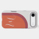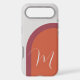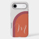 This custom phone case design has a stylish trendy vibe with its simple minimal arch shapes in a bold girly color combination of bright coral and magenta pink against a lighter dove white background. A large monogram initial adds a fashionable pop of style on this elegant designer case. Personalize the template with your monogram initial.