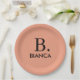 Simple coral pink minimalist monogram paper plate