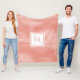 A simple subtle marble design fleece blanket in coral pink with a modern white square badge that you can personalize by adding your monogrammed initial to. This is part of the Blooming Dahlia Subtle Marble Monogram Collection. Choose from 3 sizes.