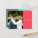 This Save the Date postcard is simply designed with coral, teal, and grey colour blocks. It features an image on the front with names printed over a coral colour block. The details are stated on the back over a grey colour block. Teal and grey colour blocks divide the back, overlayed with teal text.