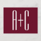 Simple Couples Initials | White & Burgundy Postcard