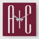 Simple Couples Initials | White & Burgundy Square Wall Clock