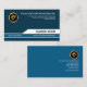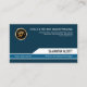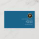 Overleaf, in a similar blue background, all your details are at the card's right wall. At the very top, there's the familiar optional faux gold icon logo. Beneath it, is your business details followed by the slogan tagline. If you decide to upload a photo instead of a logo, the dimensions are 1,000 x 1,000 pix.