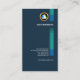 A simple card using an elegant dark blue background with three sets of arrowheads containing an underlying faded blue lined pattern. At the top lies your prestigious name and job title with the elegant faux gold logo directly underneath. All your details rest near the card's floor.