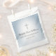 Dusty blue boy's First Communion favour bag, with a simple cross and customizable lettering design. A great addition to planning that special religious celebration in your child's life.