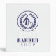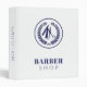 Barbershop dark navy blue and white template client appointment book binder with a specific predefined logo featuring circled scissors and straight razor with a laurel wreath. ++++++++++++ You can keep this logo or replace it on front and back with your own. ++++++++++++++ The text is fully customizable - you can change colour, font, and size; you can also change the background colour on front, back and spine. +++++++++++ With a masculine look, the template is suitable for men salon, men personal care services and products - grooming, hair styling, wellness, tailors, clothing and shoe stores and more. ++++++++++++ If you need help in personalizing it for your business, send a message to Unique Office store bellow: