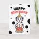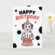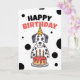 A Dalmatian next to a birthday cake, ideal for a birthday invitation or greeting.