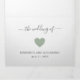 Modern All In One Tri-fold Wedding Invitation featuring a simple design with a cute heart in sage green along with your names and headers in an elegant script with swashes. The attached RSVP post card has your return address for easy mailing (PLEASE NOTE: First Class Postage is required to mail the RSVP postcard). The back has your favourite photo.