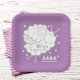 This cute 1st birthday party paper plate features hand-drawn simple line drawing of lamb (sheep) image adorned with flower hair clip, polka dots and geometric shapes, available in pink, white, cyan and lavender. For more advanced customization of this design, please click the “BLUE DESIGN TOOL BUTTON” to change font, size, colour, etc.