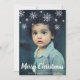Send out holiday cheer with this cute Christmas card featuring the handwritten greeting "Merry Christmas" and snowflakes drawn in chalk over your favourite family photo. The back side is a soft green snowflake pattern. You may change the colour of the background by clicking the "customize" button.