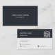 Simple custom corporate black QR Code business card in a modern minimalist style. The template can easily be updated with your QR code and contact information. The front side is dark blue, back side is white and blue