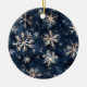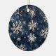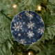 Simple Dark Blue with Snowflakes All Over Print Ceramic Ornament