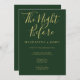 Simple minimalist dark green with yellow text rehearsal dinner invite with calligraphy "the night before".