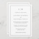 Simple all-in-one Wedding Invitation featuring a modern yet elegant design with your two letter monogram at the top and your details surrounded by a thin border. All design elements are medium grey over a white background and may be changed to any colour you wish in the design editing tool. The backside has all your wedding details, eliminating the need for a separate enclosure card, making this a budget friendly wedding invitation suite. A chic and stylish design that is great for a minimalist couple.
