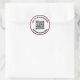 You can replace the website url for your QR code. There are two lines of black display text that you can edit to show a custom message. These stickers have black text in a white circle. The border is dark red.
