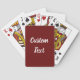 These dark red playing cards have white display text. The text is a white script. You can edit the text to show a personalized message.