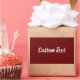 A white script forms the display text in the middle of this dark red sticker. You can edit the text as desired.