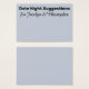 Here's a fun accessory to pick up for your engagement party or joint shower: date night suggestion cards on which guests can write personal notes to the bride and groom. On the front you read "Date Night Suggestions" in a bold, sans-serif font; this typeface is editable so you can choose another if you prefer... or even write a different message. Below there's a place for your names; these appear in a pretty script that is also easy to change. Change the background to any colour you prefer!. Please do not hesitate to reach out to me if you have special requests or need other items. I am also happy to help with customization of these cards if you need. //