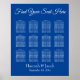 This plain, versatile design features a deep blue background with white text. Simple, elegant fonts can be changed if you prefer. All layers were added separately and left unlocked to give you much design control. This setup has 12 tables laid out in 3 rows of 4. Use template fields to add your own details.