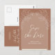 Unique yet beautiful way to send invites to friends and loved ones. This wedding invitation postcard has an arch style and features a floral design. The back of the card has your wedding announcement along with space for the recipient's name and mailing address. Shown in mocha (front and back). Just change the text to suit your needs. Use the template to personalize.
