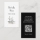QR code simple desert inspired business card, with a saguaro cactus design and black and white typography. With customizable text, you can add your own information. You also add your website to the QR code field. Great for adding a touch of Arizona and the southwest to your Interior design business.