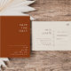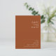 Cette carte postale d'invitation "Save the Date" Simple Desert | Terracotta est exactement ce que vous recherchez pour compléter votre mariage rustique bohème moderne. Parfaite pour un style western minimaliste vintage ou une ambiance bohémienne rétro automnale. L'écriture blanche naturelle minimale ressort vraiment sur ce fond automnal coloré. Vous pouvez choisir de la garder telle quelle ou la personnaliser avec vos propres illustrations ou photos. Faites défiler la collection pour sélectionner d'autres articles qui feront chanter votre mariage d'automne avec authenticité !