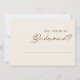 This Simple Desert White bridesmaid proposal card is exactly what you're looking for to complete your modern rustic boho wedding. Perfect for either a vintage minimalist western vibe or a retro fall bohemian feel. The minimal dark cinnamon script truly pops with this autumn background. You can choose to keep it the way it is or personalize it with your own artwork or photos. Scroll through the collection to select other items that will make your fall wedding sing with authenticity!